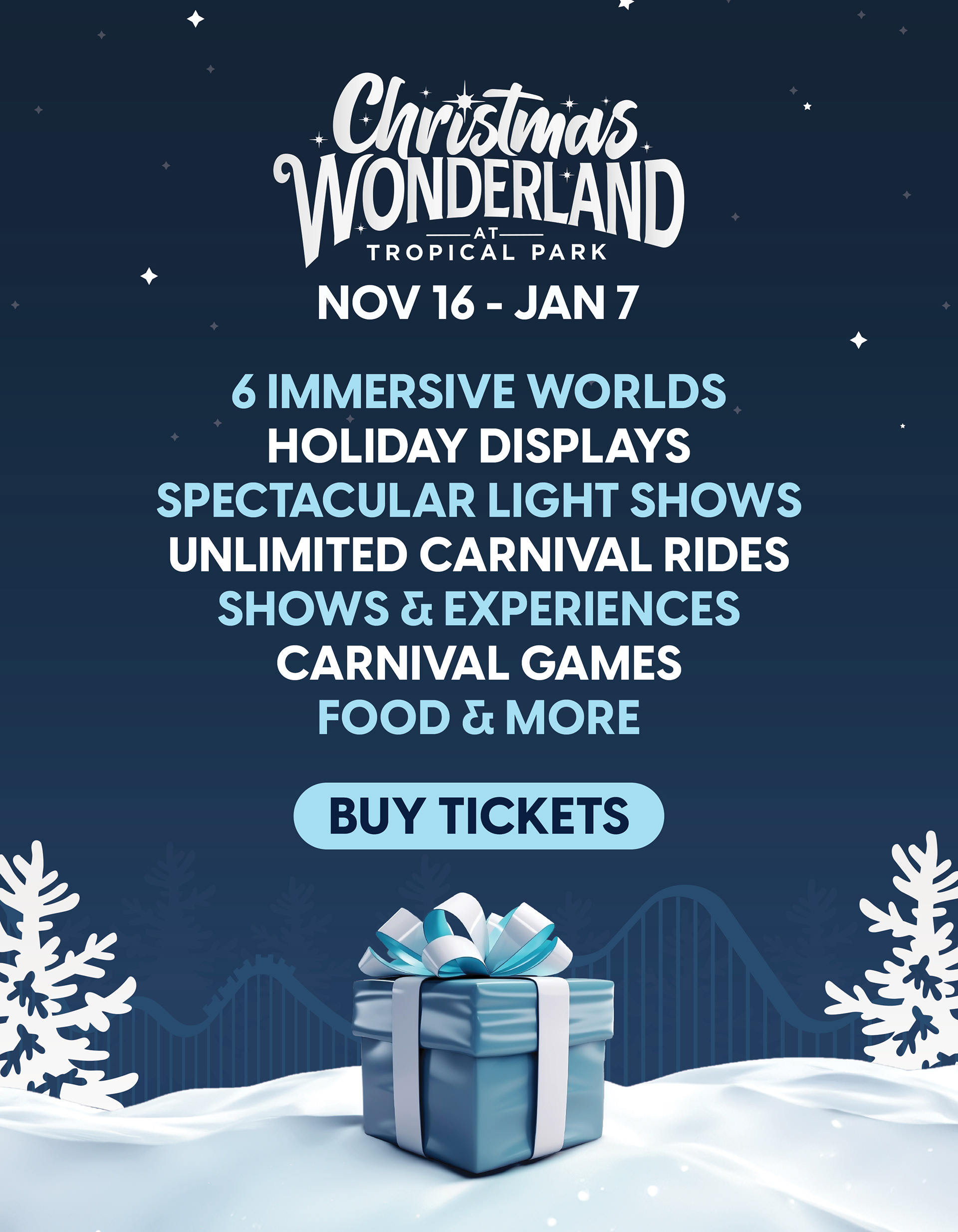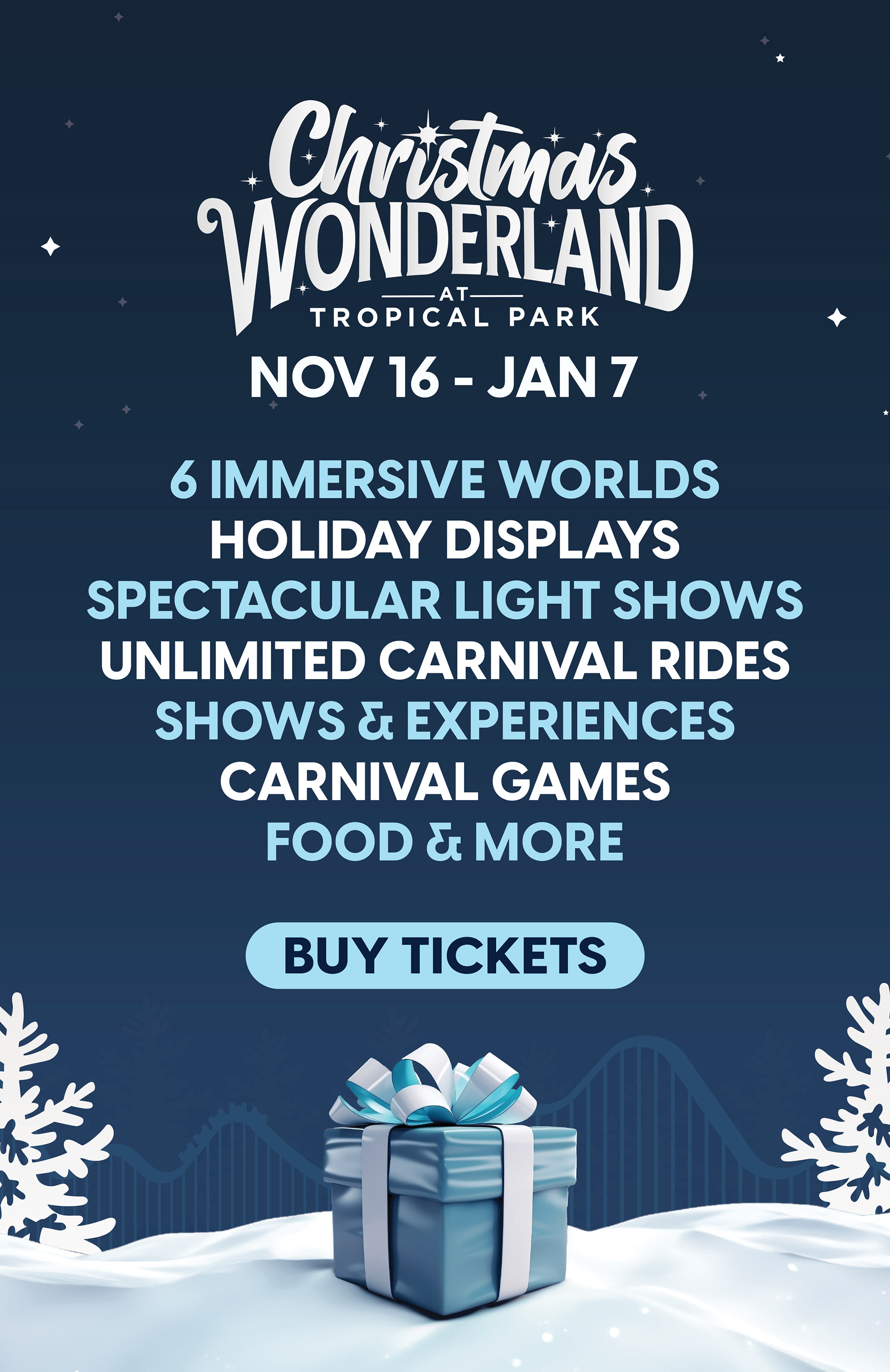 Graphics designed for Tropical Park's first Christmas Wonderland following the existing brand guidelines.