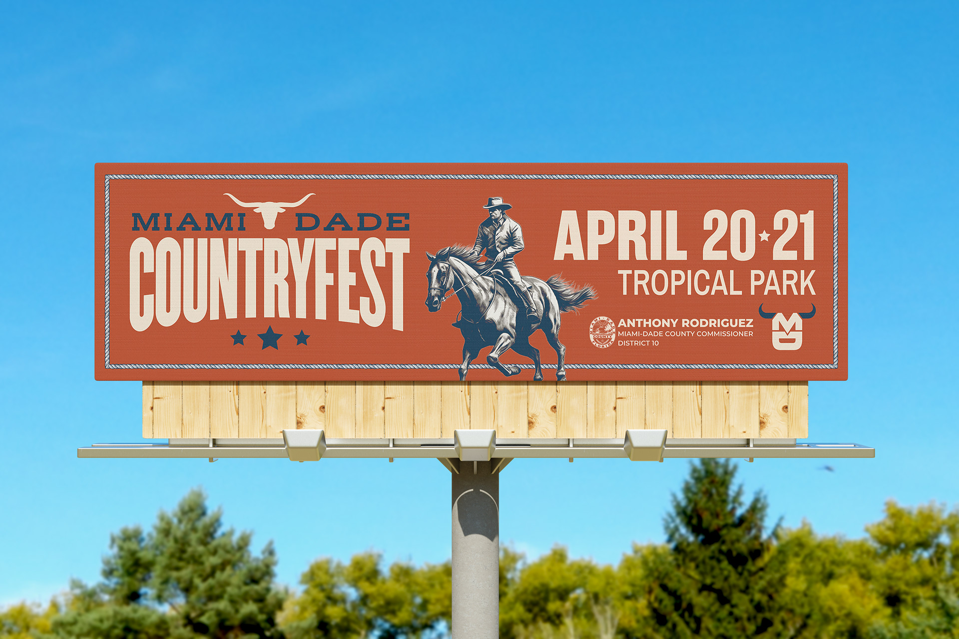 Graphics designed for the Tropical Park's annual Miami-Dade Countryfest concert following the existing brand guidelines.